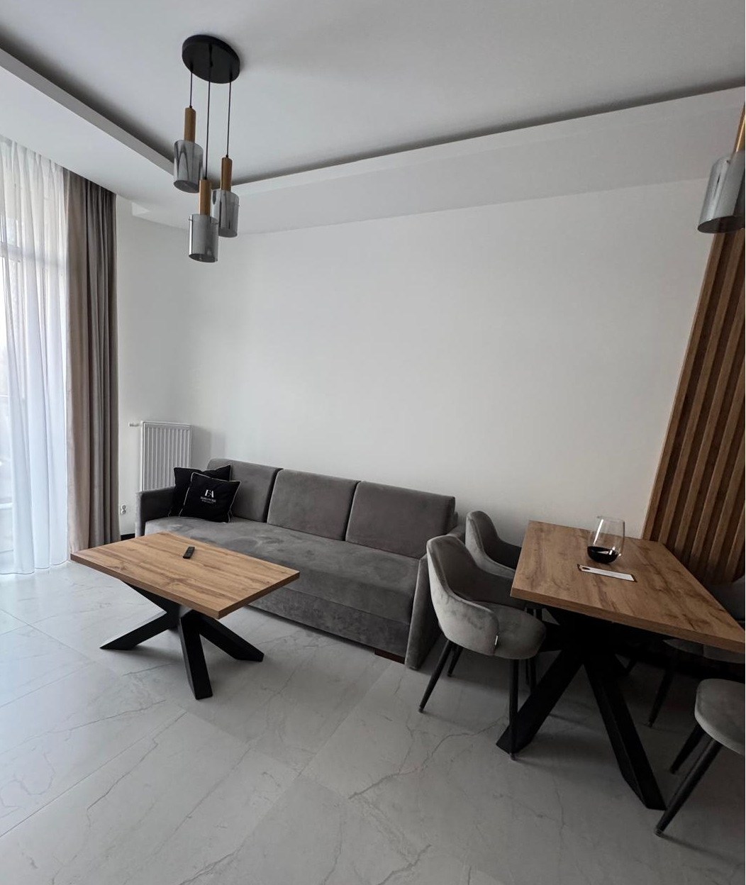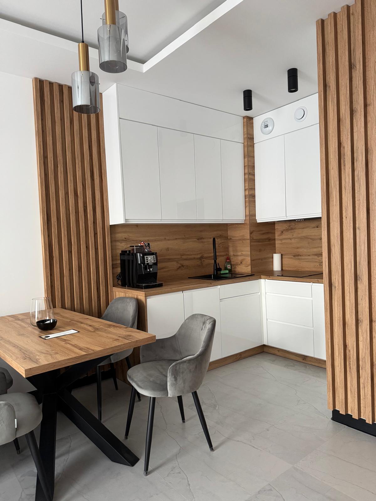 Apartament Kryształ to nowoczesne i bogato wyposażone miejsce wypoczynku położone zaledwie kilka kroków od morza. Idealny dla par lub rodzin, oferuje przestronny salon z aneksem kuchennym oraz przytulną sypialnię, zapewniając pełen relaks i wygodę podczas pobytu.
