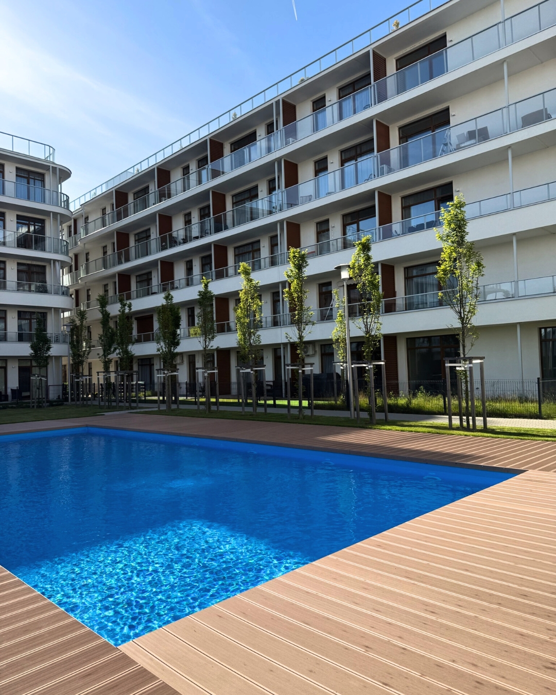 Nasze noclegi z basenem w Sianożętach to doskonały wybór dla rodzin z dziećmi, które cenią przestronne apartamenty, bezpieczeństwo oraz udogodnienia, takie jak basen, plac zabaw i bliskość atrakcji w okolicy. Pary szukające romantycznego weekendu nad morzem wybierają nasze eleganckie wnętrza i relaks na tarasie, który sprzyja relaksowi we dwoje. Dla seniorów szukających ciszy i odpoczynku, którzy doceniają spokojną lokalizację, wygodne warunki i wyposażenie oraz bliskość ścieżek spacerowych, piekarni i sklepów.